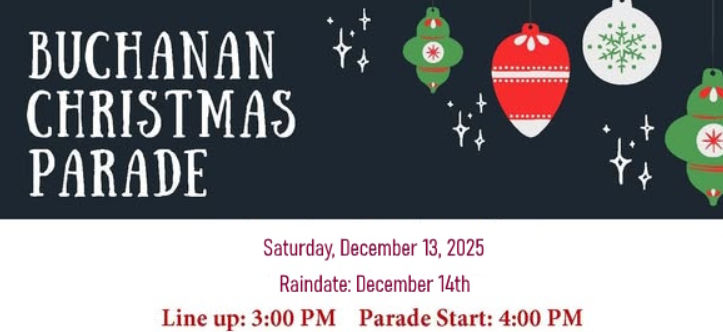 The Buchanan Christmas Parade will be held Saturday, December 13th (December 14th raindate).