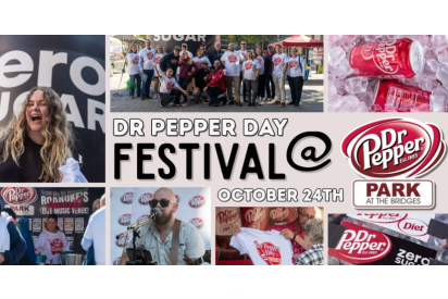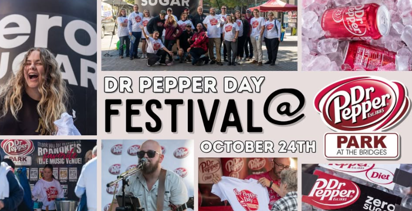 “Drink a Bite to Eat at 10, 2 and 4” was a legendary slogan used for decades to remind Dr Pepper fans to enjoy their favorite “pick me up” at three intervals during the day when research showed human energy to lag. Now Roanoke is celebrating “10-24” as “Dr Pepper Day” with a free Dr Pepper Day Festival on Saturday, October 24th from 11am to 5pm at Dr Pepper Park at the Bridges.