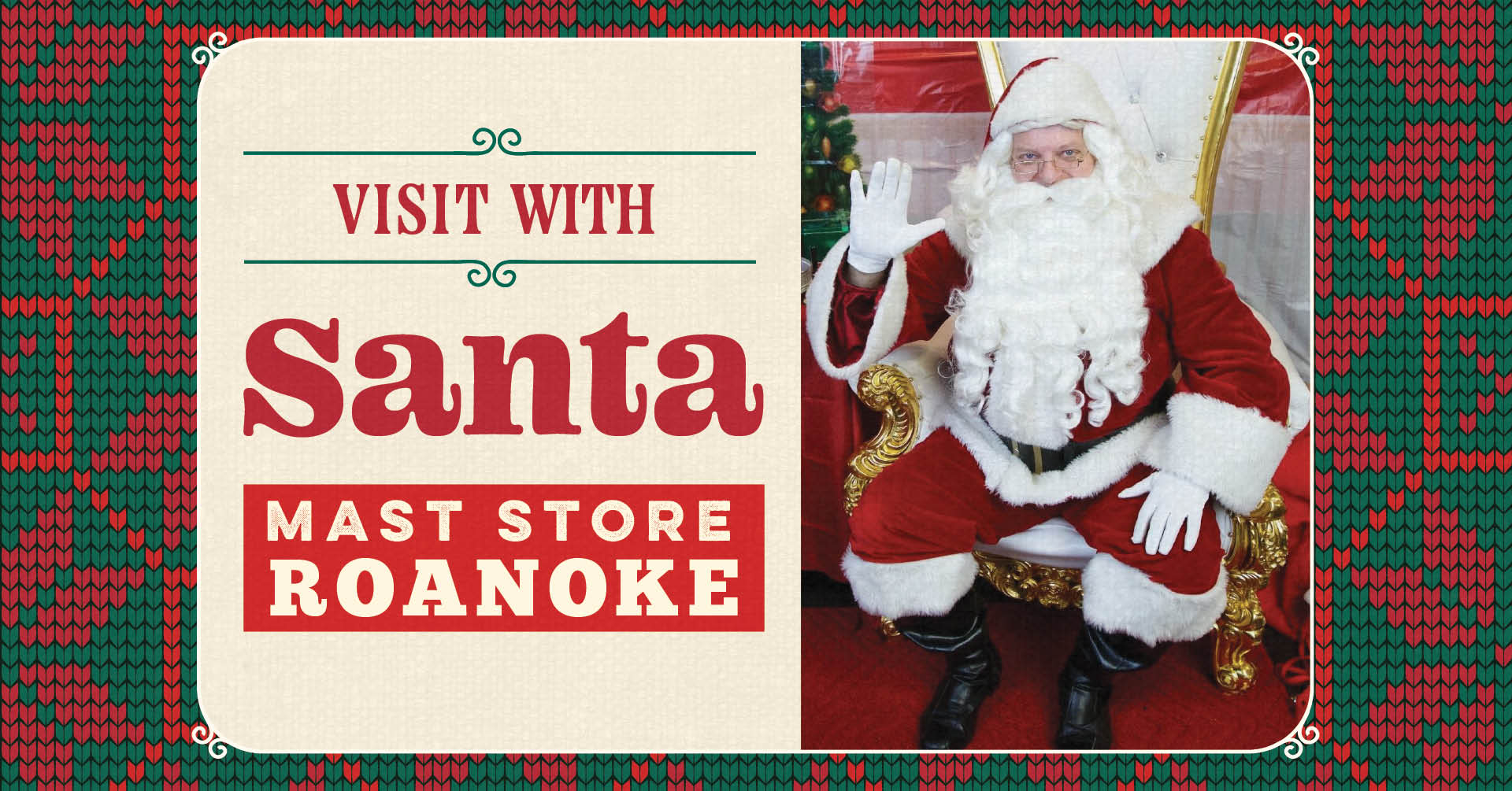 Santa will make appearances at the Roanoke Mast Store on the following dates: