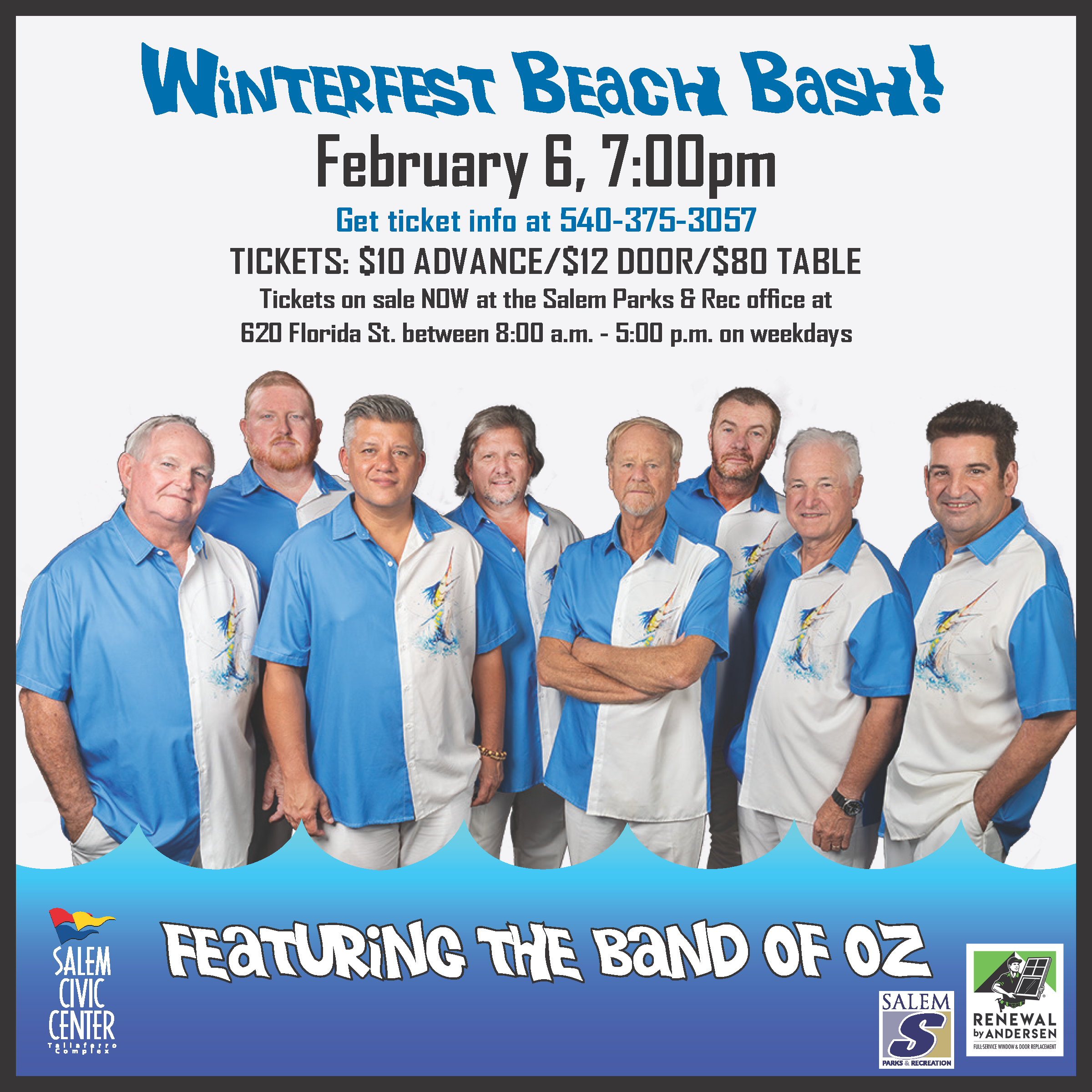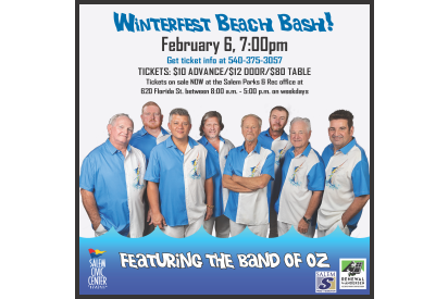 The City of Salem Parks and Recreation Department is all set to present the 19th annual Winterfest Beach Bash. The popular group “The Band of Oz” will be in town to provide a little summertime fun. Tickets will go on sale Tuesday, December 16 at 8:00 a.m. at the Parks & Recreation Main Office (620 Florida Street).